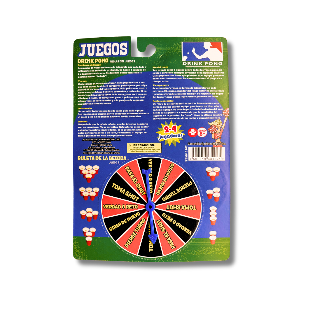 Juego de 6 pelotas de ping-pong para jugar con los amigos. Además un divertido tablero de ruleta en la parte trasera del empaque.