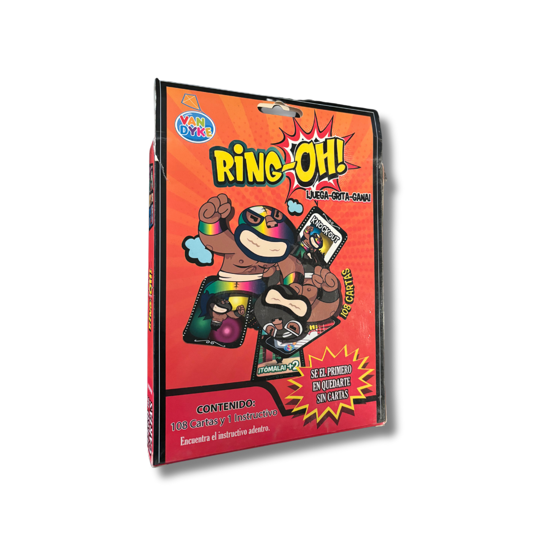 ¡Prepárate para subirte al ring y pelear por la victoria! Ring Oh es un juego de cartas inspirado en el clásico UNO, pero con un toque 100% mexicano. Cada carta está ilustrada con divertidas máscaras, movimientos especiales y personajes de lucha libre que le dan sabor y emoción a cada jugada. Fácil de aprender, difícil de soltar.